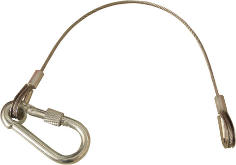 Safety wire for use with secondary hanging points. The safety wire features a locking screw nut on the carabiner.